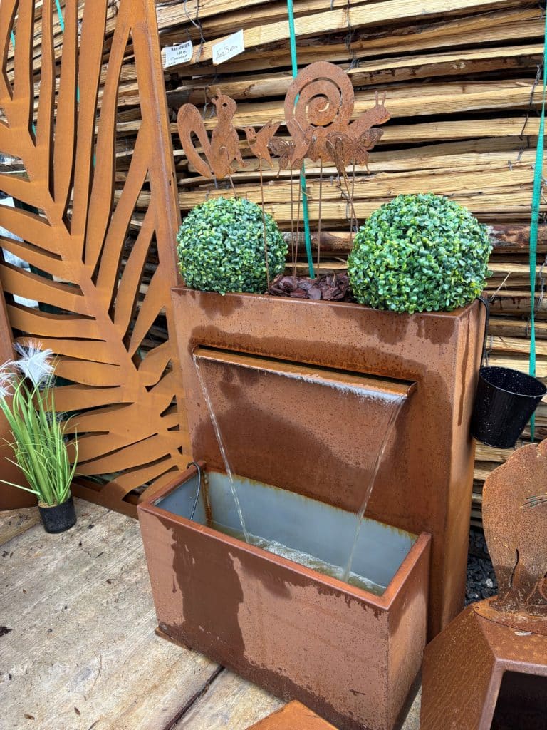 Superbe fontaine en Corten – qui n’est pas simplement du métal rouillé, c’est un matériau vivant qui change d’aspect avec le temps.
